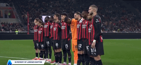 赛前仪式,双方球员为去世的洛伦佐-布冯默哀