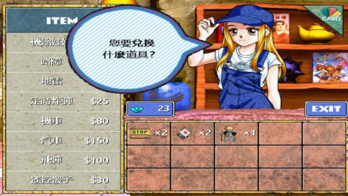 道具店妹妹戴着可爱的牛仔帽,模样软萌,一句“欢迎光临道具店!”“您要兑换什么道具?”语气俏皮又温柔。道具店是游戏里的补给站,汽车、机器娃娃、路障、地雷,这些能帮助我们赢游戏的道具,都能从这里买到。