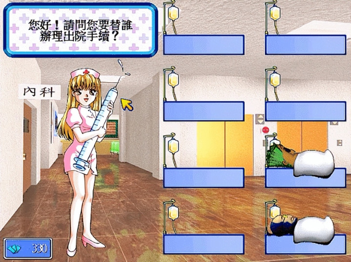 和巫女的腹黑灵动不同,护士小姐姐走的是温柔治愈路线。作为医院的专属NPC,她身着干净的白大褂,笑容温婉,语气轻柔可爱,她的台词不多,除了“您好,请问您要替谁办理出院手续”,就是“抱歉,您的点数不足”,还有那句让人想入非非的“要保重身体哦”!不过小编却觉得她是《大富翁4》里最好看的一个NPC,当然,对从小害怕打针的兄弟们来说,她手中的大针管也是蛮吓人的。